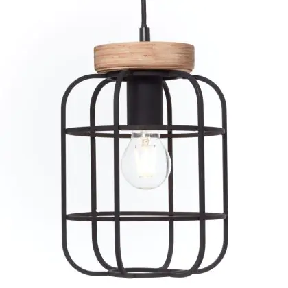 Brilliant Gwen Pendant Metal Wood Black | Suitable for 3x E27
