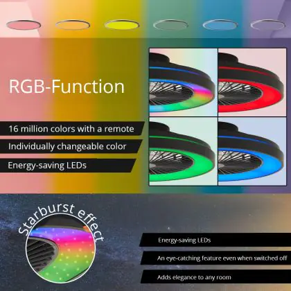 Brilliant Mazzaro Ceiling Fan Plastic Black 36W 4700lm - 830-865 CCT+RGB | 485mm - Remote Control Dimmable