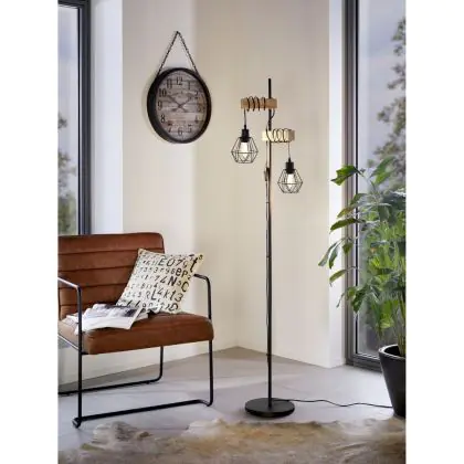 Eglo Floor Lamp Townshend 5 Steel Wood Black | IP20 - Suitable for 2x E27