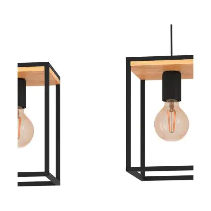 Eglo Pendant Libertad Steel Wood Black Brown | IP20 - Suitable for 3x E27