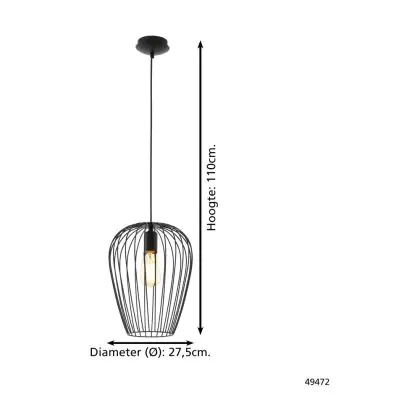 Eglo Pendant Newtown Steel Black | IP20 - Suitable for 1x E27