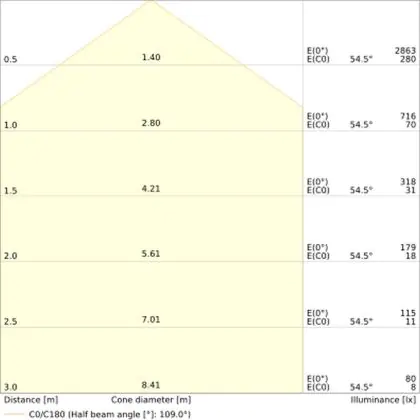 ![]() The colour code is a combination of colour rendering (CRI) and light colour (Kelvin). The first number indicates the colour rendering (1 = very poor colour rendering, 9 = maximum colour fastness). The second and third number contains the light colour. Example: the colour code 830 consists of good colour rendering (8) and warm white light (3000K). |