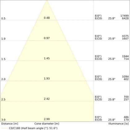 ![]() The colour code is a combination of colour rendering (CRI) and light colour (Kelvin). The first number indicates the colour rendering (1 = very poor colour rendering, 9 = maximum colour fastness). The second and third number contains the light colour. Example: the colour code 830 consists of good colour rendering (8) and warm white light (3000K). |