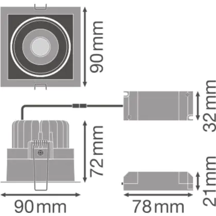 Ledvance LED Spot Square Darklight Tiltable White 8W 650lm 36D - 830 Warm White | Cutout 83mm