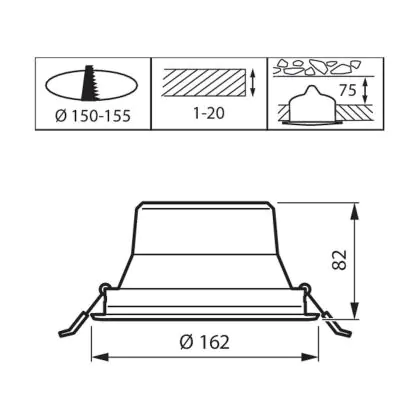 Cut out (mm) | 155 |