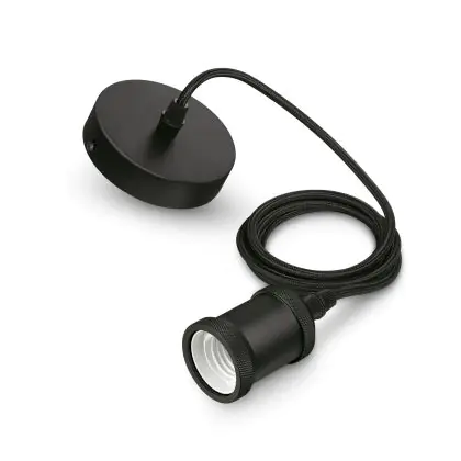 The Philips Cord Vintage E27 Black is a cord with lamp base that, combined with an E27 LED bulb, can serve as a stylish hanging lamp in the dining room, living room or in waiting rooms. The lamp base has a matt black finish and is designed to match well with an industrial interior. Furthermore, the with fabric covered cord is fully adjustable. This gives you the freedom to create a dynamic light plan with multiple Vintage cords consisting of different heights and lamp shapes. Due to their vintage design, the Philips Vintage cord is best suitable with E27 LED Filament bulbs. In addition, seeing that the Philips Cord is compatible with a maximum wattage of 40W, you have access to a large variety of LED bulbs with a varying light intensity.